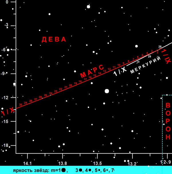 24.09.2025 в 18.1 ч Марс пройдёт в 4.5° к северу от Луны.