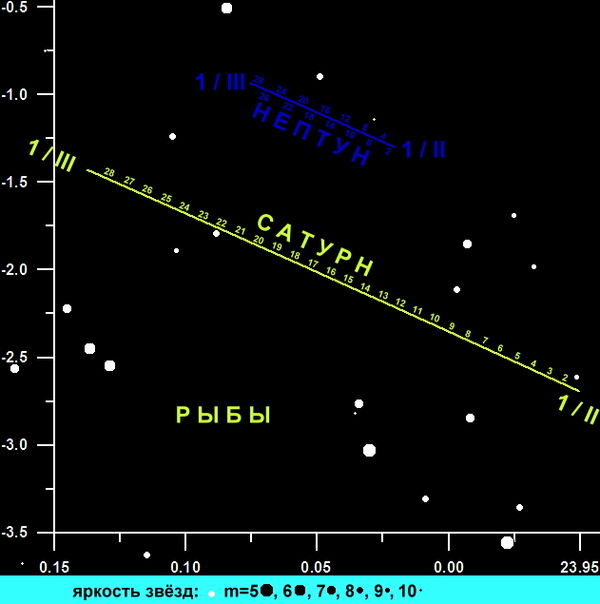 Весь месяц (и до апреля 2026 года) Сатурн находится в созвездии Рыб.