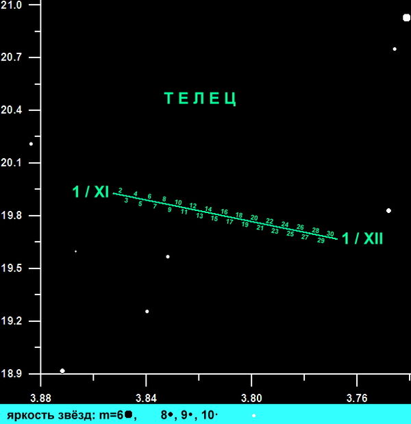 Весь месяц (и до августа 2032 года) Уран находится в созвездии Тельца.