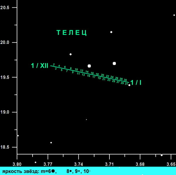 Весь месяц (и до августа 2032 года) Уран находится в созвездии Тельца.