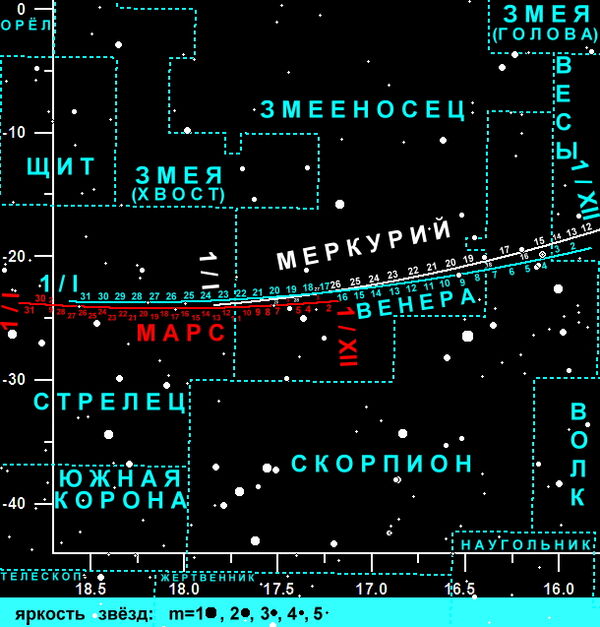 07.12.2025 – из созвездия Скорпиона в созвездие Змееносца,