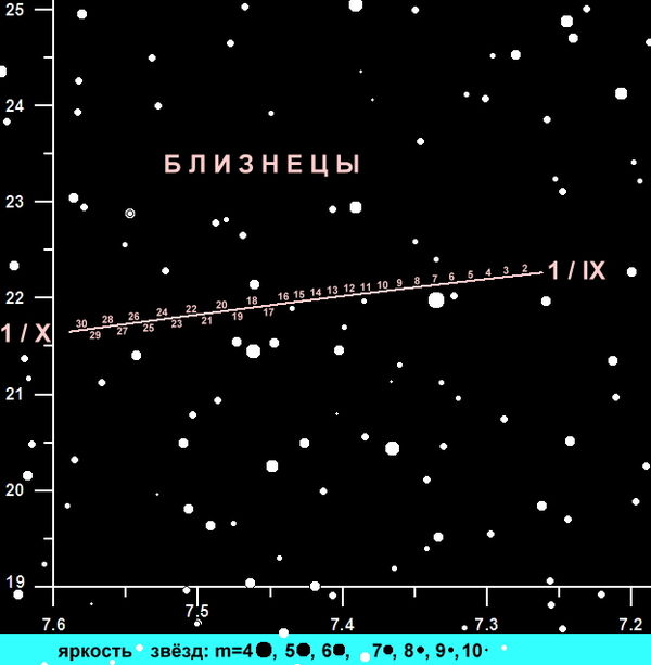 Весь месяц (и до июня 2026 года) Юпитер находится в созвездии Близнецов.