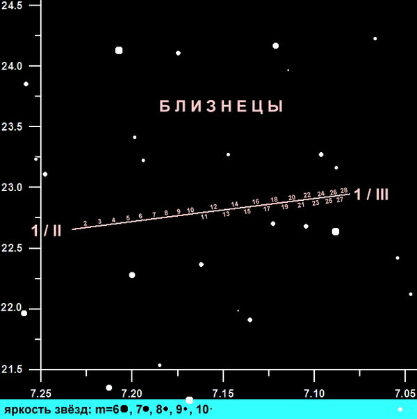 Весь месяц (и до июня 2026 года) Юпитер находится в созвездии Близнецов.