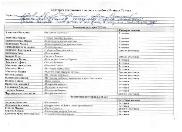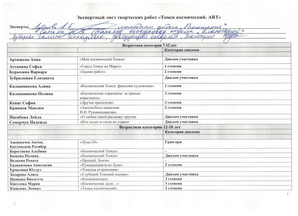 В прикрепленных листах вы можете ознакомиться с присвоенной категорией диплома. О дальнейших действиях сообщим в письмах по контактам, указанным в заявке. Поздравляем всех ребят, кто не побоялся принять участие и прислать нам свои работы! Вы - космические герои!
